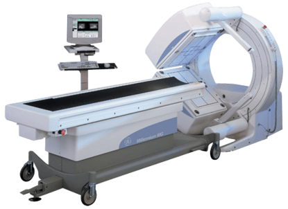 The GE Millennium MG gamma camera is a compact, dual digital CSE-detector, variable-angle gamma camera which allows you to perform a full range of nuclear medicine studies and provide complete clinical flexibility. The GE Millennium MG’s detectors may be oriented in either the 180° or 101° positions. This GE Millennium MG gamma camera features sculpted gantry arms to allow for closer proximity to the patient and a universal 3-axis table for improved patient handling and comfort.